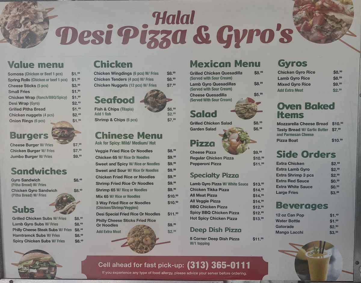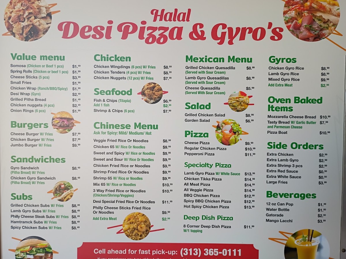 Welcome to Halal Desi Pizza & Gyro's Menu, where delicious flavors meet authentic halal ingredients. Nestled in the heart of Hamtramck, MI, this spot offers a unique fusion of classic pizza and mouth-watering gyros, all crafted with a Desi twist. Whether you're craving a hearty pizza loaded with fresh toppings or a savory gyro wrapped in warm pita, you'll find something to satisfy your taste buds. From zesty sauces to perfectly spiced meats, each dish is made to deliver a one-of-a-kind experience. Don't forget to try our special sides and refreshing drinks, adding the perfect complement to your meal. The diverse menu promises something for everyone, making it the ideal choice for lunch or dinner with friends and family.
